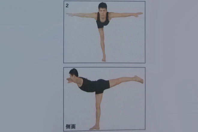 3、放低左腿,抬起軀幹,回到動作1。換右腿向後抬升,重複這個體式