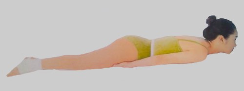 1、俯臥,兩手向下伸直,兩腿併攏伸直,下顎貼地,先做深呼吸。