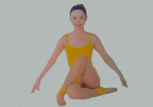 2、雙膝彎曲,右腳下,兩腿價差,使左腳踩在右大腿外側。