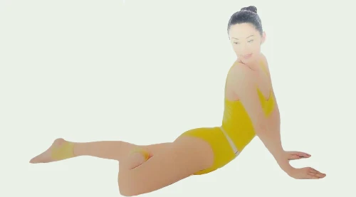 2、吸氣,雙手撐起上身,臉朝上,吐氣,停留5秒。