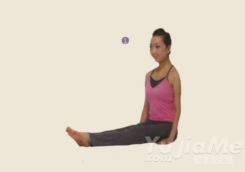 1、坐在地上,雙腿伸直,雙手放於臀部兩側,指尖向前。
