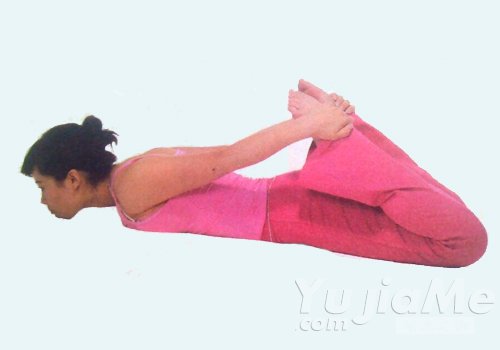 1、以弓式的起始體位開始,俯臥,雙手握腳踝,放鬆全身。