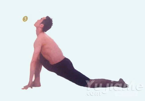 3、呼氣,向後盡力伸展左腿,胸部向前推,伸展背部,盡量使頭,頸部向後仰,換身體另一側重複這個體式。