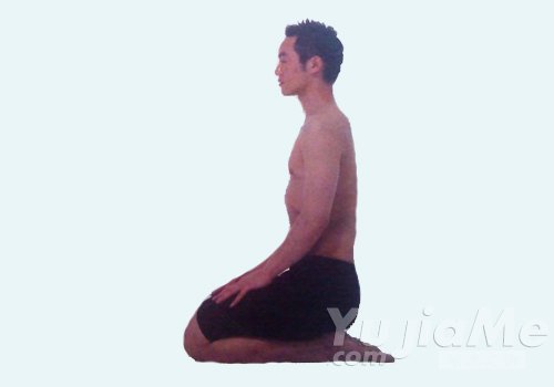 1、雙膝跪地,兩小腿脛骨和兩腳腳背平放在地面上,兩膝靠攏,使兩腳腳趾指向後方,伸直背部,將臀部放落在兩腳腳跟上。