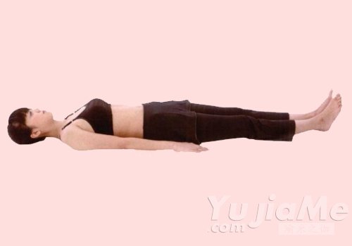 1、仰臥,雙手雙腳自然放於身體兩側,手掌貼於地面。