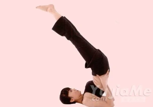 消除腿部疲勞和浮腫的體式練習。同時,該體式中抬起腿部的姿勢的減腹功效十分顯著,梵語中“viparita”是倒轉的意思,“karana-asana”是“身體”或“進行”的意思。