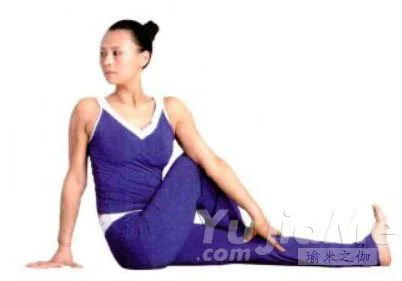 姿勢分解:1、正坐於墊上,兩腿向前伸直,雙手自然地放在大腿上。2、右腿內收屈膝,右腳跟靠近左大腿外側,深呼吸。3、向右轉體,左肘放於右膝外側,左手抓住右腿,右手放於左側腰部。呼氣,上體慢慢用力向右轉動。吸氣,放鬆,轉動時雙臂用力,以增加轉動幅度。同樣方法,在另一側重複。益處:這個體式能充分伸展手臂及大腿肌肉,增強肩關節、脊柱及髖關節的活動性,有效預防肌肉拉傷。小建議:保持的時間越長越好,上半身轉動時,注意眼睛盡量沿著轉動的方向看去。如手不能抓住腳的內側,可以屈肘,肘部用力推膝關節。