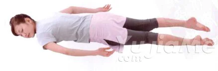死者式是從所有的束縛中解脫出來,完全放鬆的姿勢。梵語中的“Murita”是“死者”的意思。該姿勢的寓意是尋找超越生死的存在。是一種用於調整呼吸或在練習完一種瑜伽姿勢後休息時所用的體式。 死者式的基本要領:①仰面平躺,雙手與雙腳稍稍向左右兩側打開,掌心向上。②雙腳打開與肩同寬,腳尖向外。③輕輕閉上雙眼,調整呼吸,放鬆全身。 要點:保持這樣的姿勢1-3分鐘,完全放鬆全身。放鬆全身的方法:仰面平躺,稍稍張開雙手雙腳,掌心向上。抬起頭、雙手與雙腳,距離地面大約30公分。雙手與雙腳同時用力,繃緊身體。瞬間放鬆全身,此時的狀態便是死者式的基本狀態。 要點:手腳繃緊之後瞬間放鬆。變化一:側臥的姿勢變化二:俯臥的姿勢
