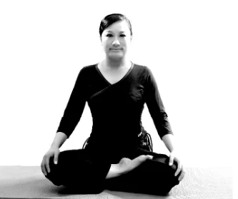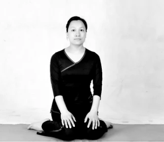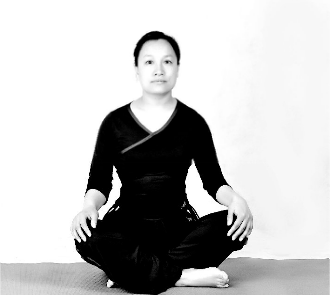 坐在墊子上兩腿伸直,彎曲右小腿將右腳放在左大腿上。屈左腿並把左腳放在右大腿之下。腰背挺直,保持自然呼吸(功效:靈活雙膝,防止老年脫臼、關節炎、風濕痛)。