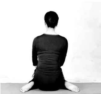 坐在墊子上兩腿伸直,彎曲右小腿,把右小腿放在左大腿下,屈起左小腿,把左小腿放在右大腿下。雙手自然垂於雙膝。頭、頸和軀幹部保持在一條直線上(功效:加強兩靛、兩膝、兩跺的靈活性,補養和加強神經系統,減輕和消除風濕和關節炎)。