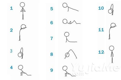 把這12組動作連貫地練2遍也才5分鐘而已。值得提的是,它的動作雖然簡單,卻涵蓋身體的各個部位,不僅是瑜伽熱身的最佳選擇,對美容、纖體健身也有非常顯著的效果。
