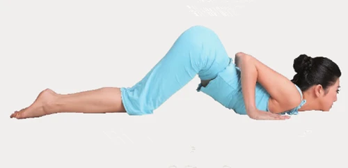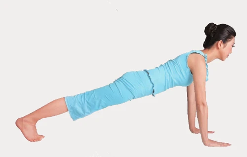 6、蛇擊式:呼氣,彎曲肘部,同時把雙膝、胸部、下巴貼在地面上,保持不動。此時雙腿膝部以下完全貼地。保持3次呼吸。