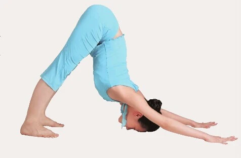 8、頂峰式:吸氣,雙腳腳掌貼地,抬起臂部,雙手和雙腳位置不動,伸直膝蓋,讓雙肩向下壓,盡量將額頭和雙腳腳後跟著地。身體呈倒V形。保持3次呼吸。
