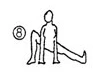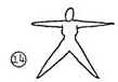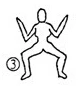 註解:身體屈蹲是一個非常好的休息姿勢,當身體運動時,血液流量過快會造成身體的疲勞,運用這個姿勢能夠鎖住身體的血液流量,得到蓄積能量的恢復;因此在日常人體疲勞時,屈蹲一會具有恢復疲勞的作用。