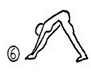 註解:注意左右腿伸直【膝蓋有問題的可彎曲下左膝】,臀部向上提時,不要勉強用力,隨著練習逐漸掌握即可。意識專注腳部,避免頭暈。在這個體式中,頭部倒置,使頭和軀幹的供血量改善,胸腹器官也得到放鬆,腿部的肌肉及韌帶得到伸展。向下摺疊的身體使腹內臟得到擠壓按摩,使其功能得以增強。