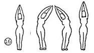註解:呼氣向右側彎曲,因身體的右側為陽,需要釋放氣力;吸氣向左,人體左邊屬陰性,需要蓄積氣力,如此,令人體的氣機能夠左右均衡得到調整。尤其對身體腰肌兩側有很好的調理;對於春秋兩季身體乏力者,左右擺動是個非常好的調理、調整練習。指印名曰“降氣能量掌印”具有調理人體陰陽氣脈的特殊作用,並能夠安定心神,降逆血氣,對高血壓者良好。