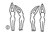 2—(1)、深深的吸氣,舉臂合十舉放在頭頂,停留一秒,緩慢的呼氣,十指交叉相扣掌心朝上繼續上舉,隨著氣息呼出,手臂盡力向上伸展,停留一下保持身體靜力的舒展;感受手臂上拉,令身體上下整體的舒展。緩慢的吸氣,手掌安放頭頂,放鬆一下你的肩膀,呼---氣,手掌再次帶著肢體向上延伸,此刻腳尖踮起,隨著氣息感受身體迎體向上的放鬆與舒展。