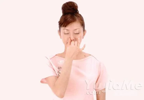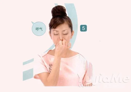 2、用拇指按住右鼻孔。