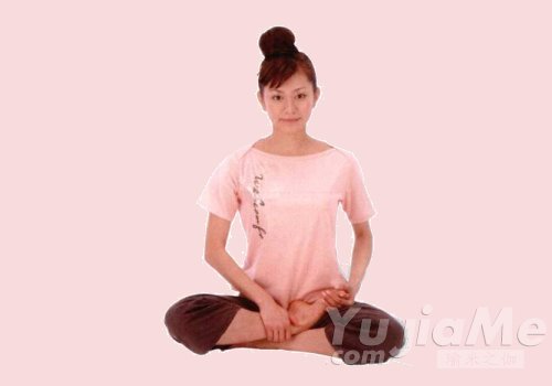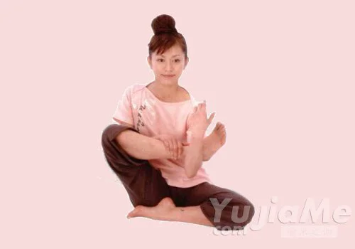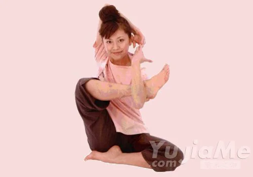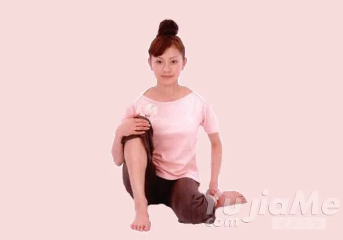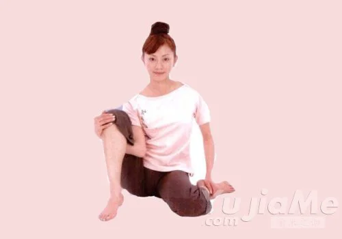 3、右手從右腿膝蓋內側伸入並搭在膝蓋處。