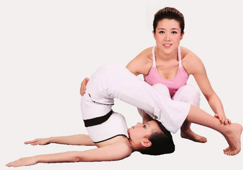 如果無法依靠自身的力量使腳尖於頭頂上方觸地,或在腳尖觸地後無法保持身體平衡,可讓教練將手扶在你的後腰處和腳踝處,以幫助你保持身體穩定,更好地完成練習。