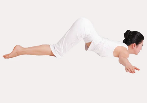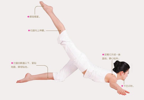 1、俯臥,臀部盡量抬高,使胸部以上,膝蓋以下著地,下巴點地,雙臂張開,緊貼地面。