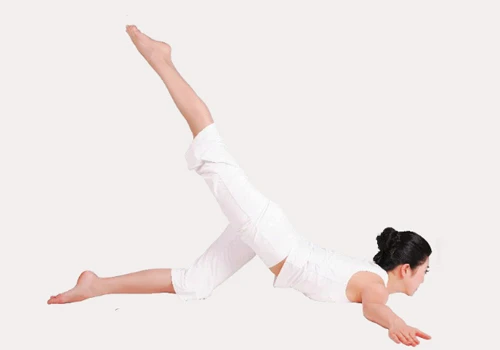 體式介紹:體式完成後,雙臂張開,臀部翹起,單腿盡量向上伸展,身體形似一個振翅而飛的小鳥,因此而得名。