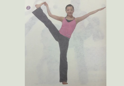 2、呼氣,脊柱伸展,慢慢伸直舉起的右腿,舉起左臂,指向身體的左上方,使身體保持平穩。將舉起的右腿向身體拉近,保持右腿伸直。保持兩個呼吸。呼氣,放開握緊的手指,慢慢將腿放落,回到山式,換另一側身體重複這一體式。