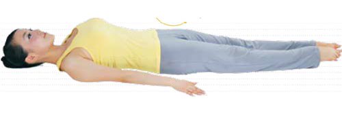 仰臥在墊子上,兩腿併攏伸直,兩手放於身體兩側,掌心向下。