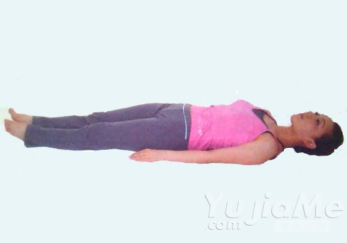 1、仰臥,雙腿併攏,雙臂放於身體兩側,掌心向下。