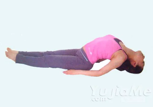 2、背部向上收緊離開地面,頭、頸向後放鬆,頭頂觸地。