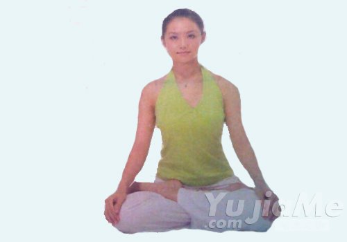 1、以蓮花坐姿坐下。保持脊柱挺直,頭部與脊柱在同一條直線上。