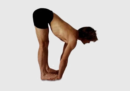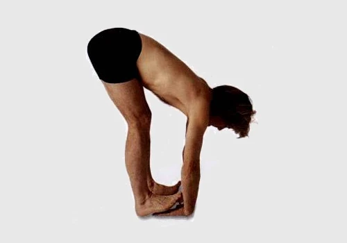 在這個運動的梵語命名中,為完成第二個前曲動作,你必須完全站在手上—實質上,除了它的程度深一點,其餘的動作基本與站立前曲一系列相同,在這個系列中,你需要注意保持打開肩胛骨以便保持烏佳依喉呼吸的充分使用。完全站在手上與拜日式中的第三個動作所需要的腕關節彎曲的相反方向伸展(具體看下面的步驟3)。把注意力完全轉移到手上,以手背壓墊子。1-2、呼氣一吸氣呼氣,如山式站穩—看著鼻尖凝視點,意識集中於會陰收束。為下一次吸氣做好準備。吸氣,邁開雙腳與髖同寬,並把雙手放在收腹收束上。3、呼氣保持手和下腹的接觸以確保還在繼續應用具有保護作用的收腹收束。膝蓋稍曲,從髖部處把身體向前摺疊。從收腹收束中放鬆雙手,並把它們完全放至腳下。當腳趾接觸到腕關節時,就可斷定手的位置是正確的。眼睛看著手和腳交叉的地方。4、吸氣腳從手背上往下壓,上提脊柱至完全伸直。伸直雙腿,仰視第三眼凝視點培養收腹收束的延長和伸展。