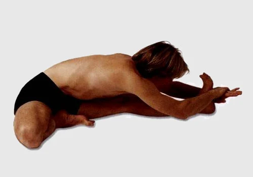 Janu意為“膝蓋”,sirsa的意思是“頭”。頭碰膝前曲伸展式A是髓部和腳後跟形成角度的三個變化式中的第一個。在這一動作中,彎曲的膝蓋和伸直的大腿之間形成大約90一95度的角度,並且腳後跟靠著會陰處。這是第一個介紹脊推稍微扭曲的坐式體位(asana),你必須注意正確地結合收束(bandha)來保護你的後背。腳後跟對會陰產生的熱量和壓力可以刺激男性胰腺的功能。這個體位還被認為可以幫助減輕膀朧炎的症狀。