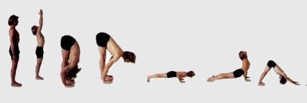 半串聯體位至左側,重新還原到步驟2。從這時起重複接下來的步驟。左右方向互換,在完成左側的運動之後。向上串聯體位至山式。