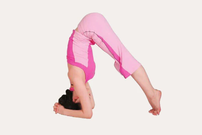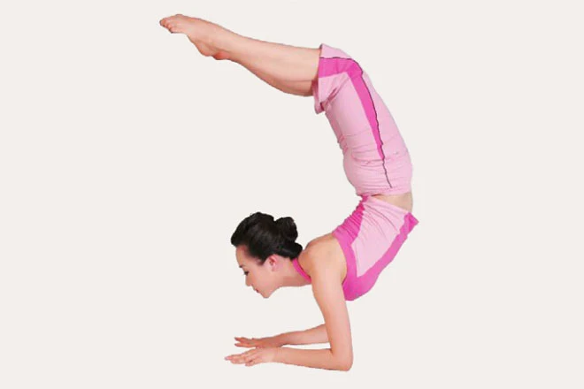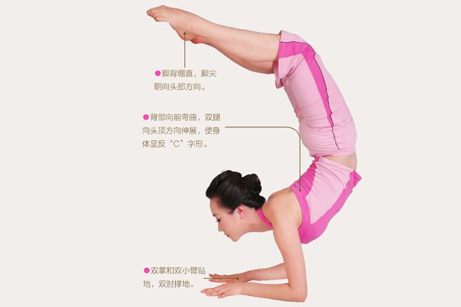 體式介紹:這個體式的梵語名是“Vrschikasana”,Vrschika的意思是“蠍子”、為了刺到獵物,蠍子會把尾巴拱起高過背部,然後越過頭部朝前猛擊。這個體式就如同一直正在攻擊獵物的蠍子,因此而得名。