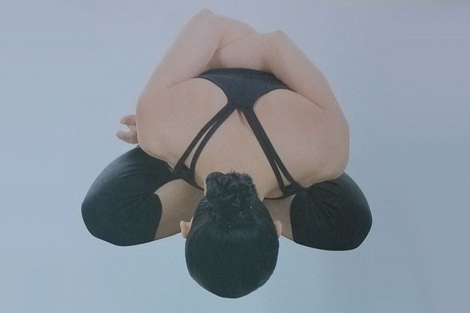 2、用手緊緊地抓住腳背,深深地吸氣,然後呼氣,軀幹從臀部開始向前彎曲,直至頭部碰觸到地面。腹部和盆骨區域緊貼小腿脛骨和雙腳腳跟。雙手抓住雙腳,保持穩固;臉朝下,前額和鼻尖觸地。保持這個體式30~60秒,正常地呼吸。