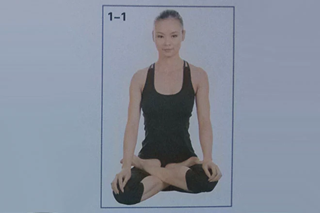 3、抬升軀幹和頭部,雙手鬆開雙腳,以蓮花坐姿坐下,放鬆。