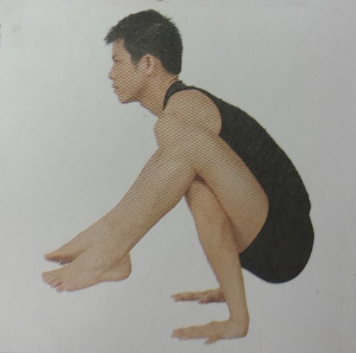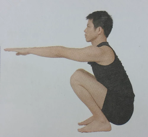 1、雙腳併攏,蹲在地面上,腳掌和腳跟貼地,大腿後部緊貼小腿後部。雙腳分開約45裡面,雙臂向前伸展,與肩同寬。