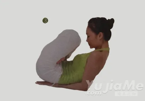 3、腹部收緊,將頭、兩腿及上身抬離地面,使雙腿盡量靠近胸腹部,腰臀部壓在兩前臂和雙手上,重量由臀及前臂支撐,收頷收腹保持一段時間。