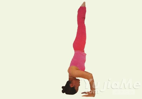 1、完成頭倒立變化式一。手掌撐地。