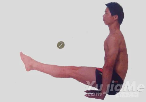 兩膝靠近腋窩。雙臂保持伸直。控制好平衡。