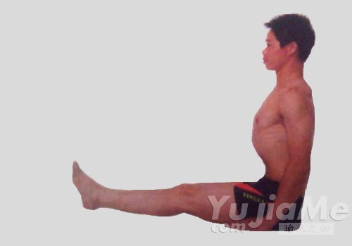 1、坐在地面上,雙腿向前伸展,雙手手掌平放在臀部兩側地面上,指尖向前。