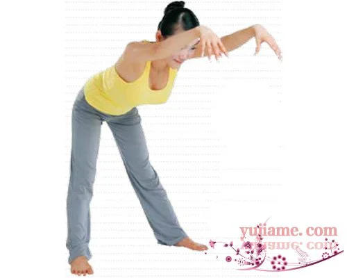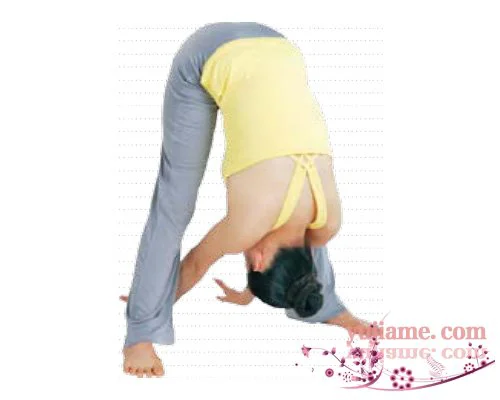 深吸氣,呼氣時,以腰為軸,上半身快速向下落,腰部帶動雙臂在兩腿之間好像鏟斗機挖土一樣前後擺動6次。