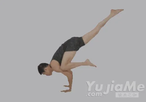3、吸氣,右腿向後向上伸展,完全伸展脊柱和右腿。保持這個體式10-20秒,正常呼吸。