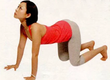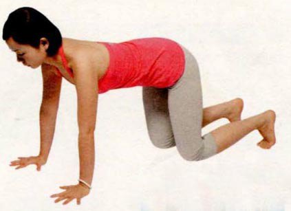 身體呈跪姿,手掌平穩張大放在肩膀的正下方,膝蓋位於髖骨的正下方,讓身體呈為一個門字型。