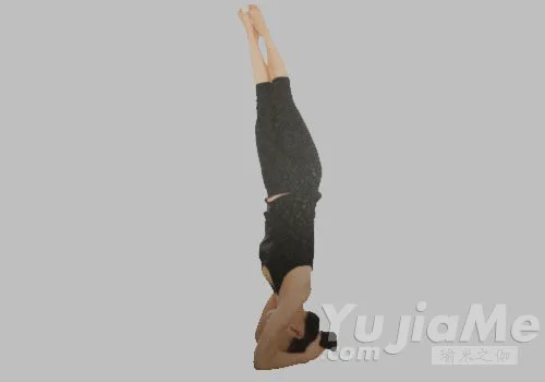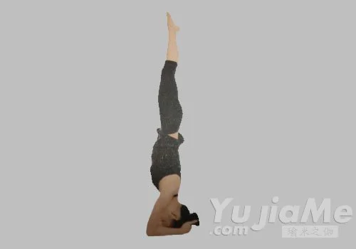 3、呼氣,回到頭倒立第一式,保持一個呼吸的時間。呼氣,脊柱向左側扭轉,重複這個體式。