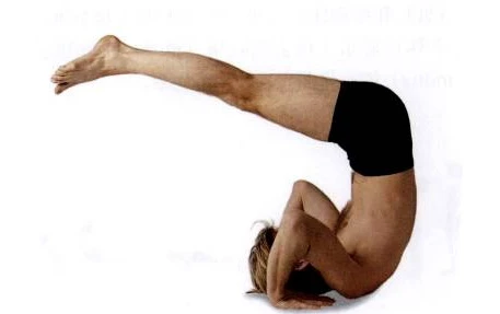 (後翻串聯體位)背部繼續上提離開墊子,雙腿高抬於頭部大約成45度角。手臂從墊子上的平放位裡上抬至頭部之上。串聯體位(vinyasa)的精髓,呼吸和運動同步,在這裡是至關重要的以內部上提動作和滾動動作轉換成一個優雅的向後翻滾動作。